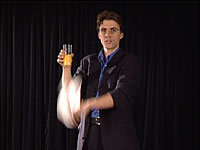 A full glass of freshly squeezed orange juice appears out of thin air,